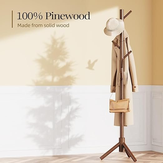- Sturdy Wood Material: Crafted from high-quality, solid wood, this coat rack is sturdy and strong enough to support your clothes and items without wobbling. The large triangular base of the freestanding coat rack stand provides excellent stability.